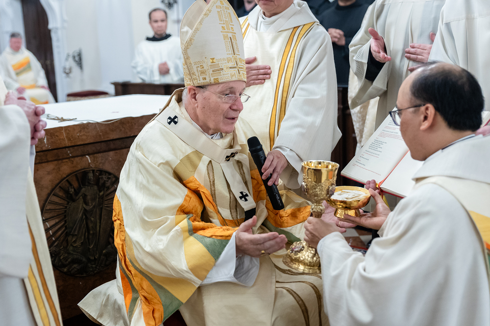 Kardinal Christoph Schönborn hat am Wochenende in Wien P. Thomas Pham (42) zum Priester geweiht. Der aus Vietnam stammende Neupriester ist seit Januar 2023 Provinzökonom der Österreichischen Ordensprovinz der Barmherzigen Brüder und seit April 2023 Prior des „Metropolitankonvents“ in Wien-Leopoldstadt. Die feierliche Priesterweihe fand am Samstag in der Kirche des Hospitalordens in der Taborstraße statt. Wir waren mit der Kamera vor Ort.