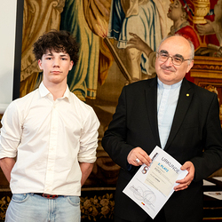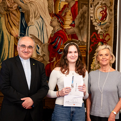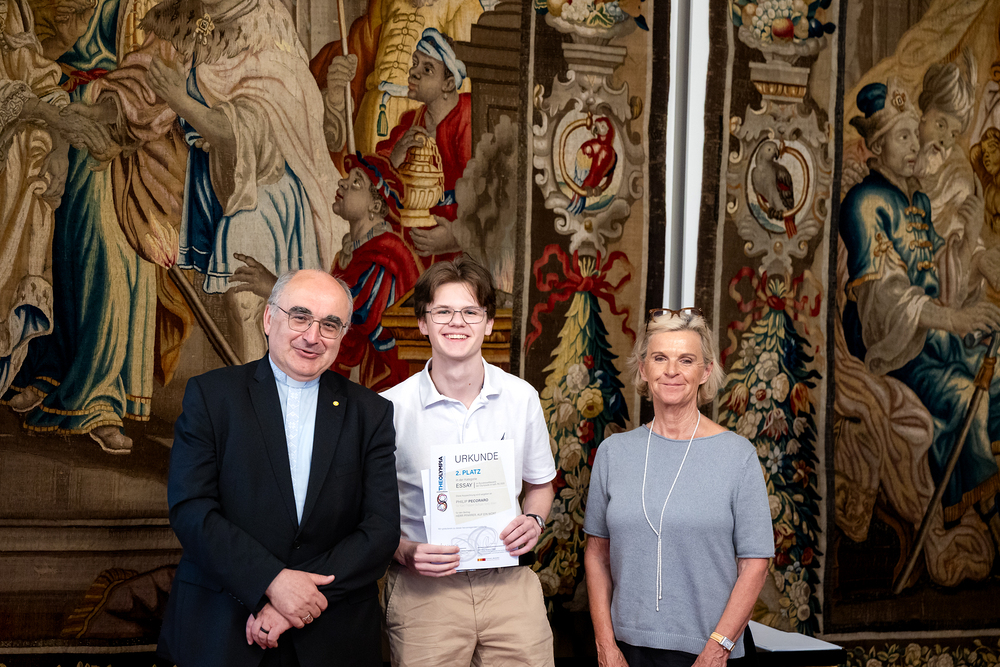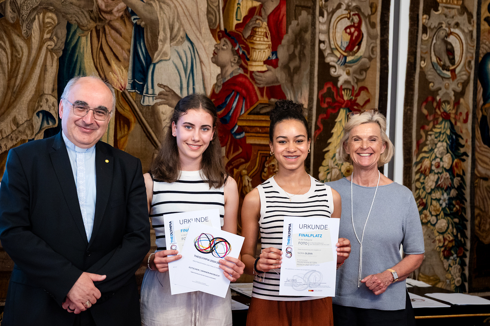 Unter dem Titel "Unheilige Allianz oder heilige Pflicht" haben Schülerinnen und Schüler im katholischen Religionsunterricht im Jänner dieses Jahres insgesamt 343 Essays und Fotoarbeiten zum Thema Religion und Politik eingereicht. Nach Beurteilungen in den jeweiligen Diözesen und der Bundesjury wurden im Mai die Siegerinnen und Sieger der fünften Religions-Olympiade "Theolympia" verkündet und am Montagabend im Festsaal des Erzbischöflichen Palais in Wien geehrt. Wir waren mit der Kamera dabei.