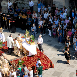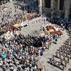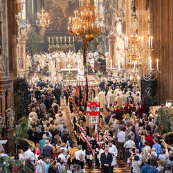 Josef Grünwidl betonte beim Stadtumzug anlässlich Fronleichnam die untrennbare Verbindung zwischen dem religiösen Feiertag und der christlichen Verantwortung, Gottes Schöpfung zu bewahren und eine „ökologische Umkehr“ angesichts der Klimakrise einzuleiten. Er dankte allen, die durch nachhaltiges Handeln und politischen Einsatz dazu beitragen, notwendige Maßnahmen zu ergreifen, um die dramatischen Folgen des Klimawandels abzuwenden. Die Fronleichnamsprozession, die vom Stephansdom ausging und Stationen am Michaelerplatz sowie am Graben bei der Peterskirche umfasste, zog erneut zahlreiche Gläubige und kirchliche Gruppierungen an. Auch politische Vertreter waren anwesend. Wir waren mit der Kamera dabei.