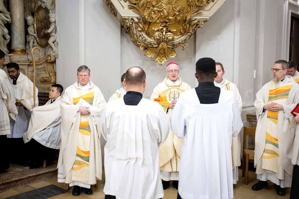Die Admissio ist ein bedeutender Schritt auf dem Weg zur Weihe. In einer feierlichen Liturgie wird der Kandidat offiziell in die letzte Phase der Vorbereitung auf das Weihesakrament aufgenommen. Mit diesem Akt bekennt der Kandidat öffentlich seine Bereitschaft, den Dienst in der Kirche anzunehmen und seinen Weg der Berufung weiterzugehen. Diese Feier drückt die Anerkennung der Kirche aus und stärkt die Verbindung zwischen dem Kandidaten und der Gemeinschaft. Durch Gebet, Segen und Zuspruch wird der Kandidat auf seinem weiteren geistlichen Weg begleitet und ermutigt. Unter die Weihekandidaten aufgenommen wurden die Seminaristen Philipp Gartlehner und Henry Ekene Obi. Wir waren mit der Kamera dabei.
