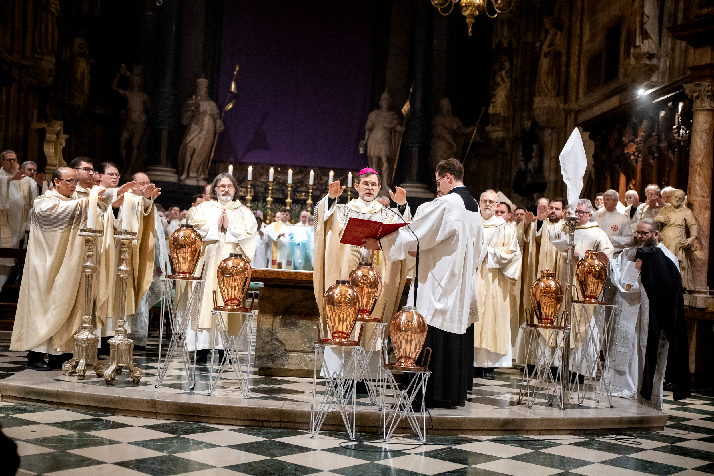 Wiener Erzbischof feierte Chrisammesse im Stephansdom - "Die heiligen Öle wollen uns Gottes Energie schenken, dem Leben Glanz verleihen und Balsam sein für die Seele". Unsere Kamera war dabei.