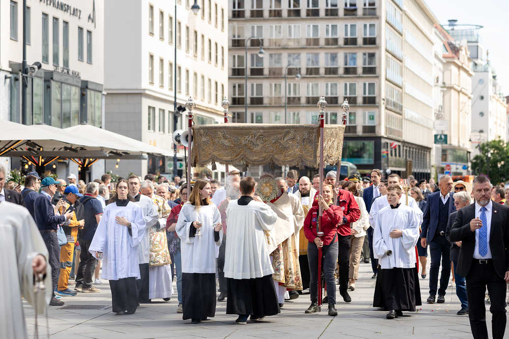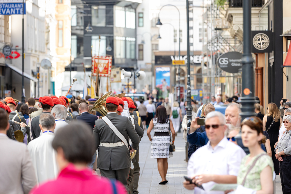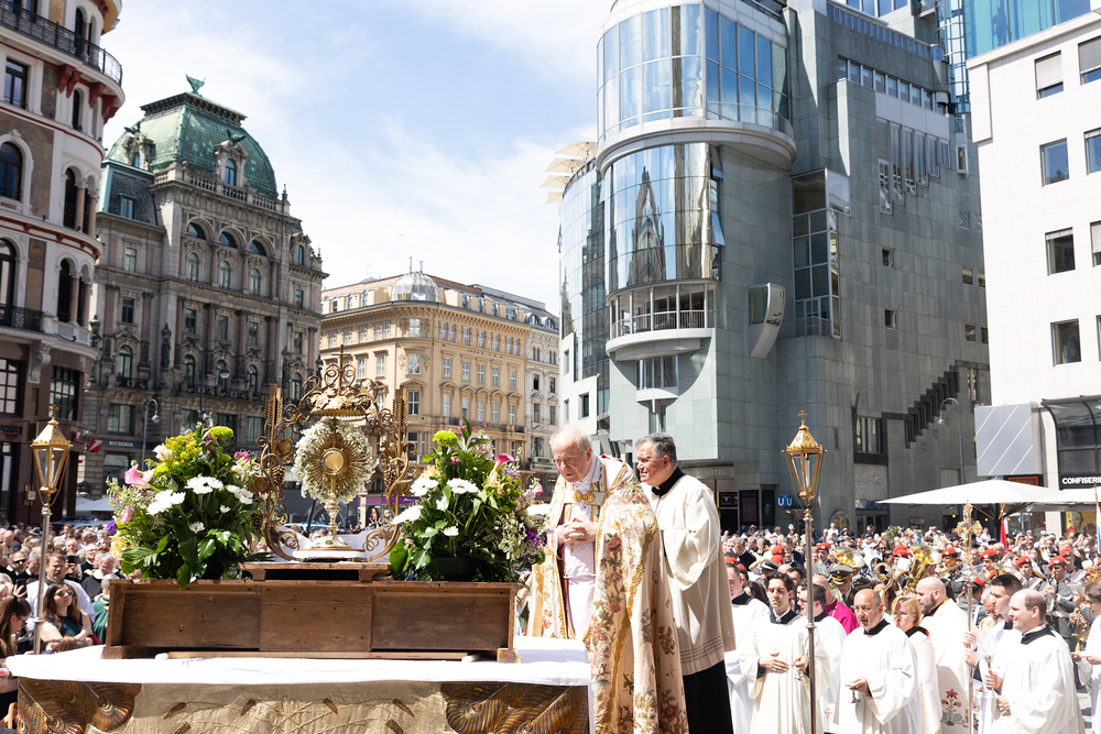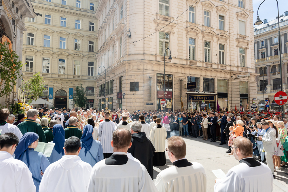 Großer Stadtumgang zu Fronleichnam mit Kardinal Schönborn