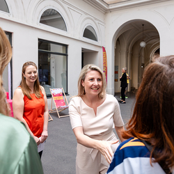 Kardinal Schönborn segnete heute den neuen Standort von Mamas Werkstatt der St. Elisbabethstifung im Zwettlerhof im Herzen Wiens anlässlich des Besuchs der von BM Raab. Mamas Werkstatt ist ein Projekt, dass alleinerziehende Frauen durch gezielte, individuelle Förderung ihrer Fähigkeiten in die Eigenständigkeit begleiten soll. Wir waren mit der Kamera dabei.